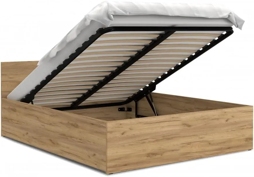 Lit double Panama 140x190 cm avec coffre de rangement et sommier en chêne inclus