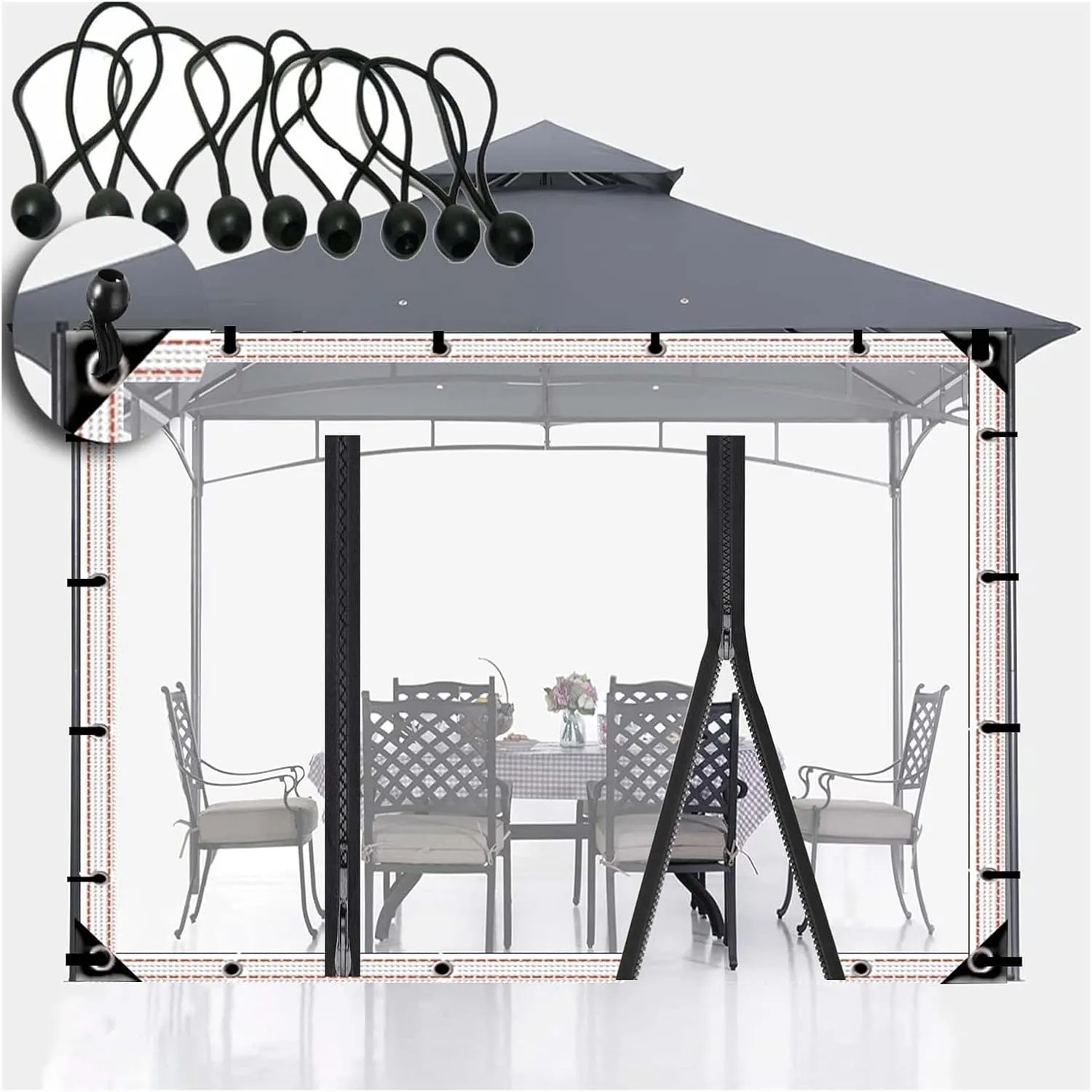 Rideaux transparents étanches pour extérieur, jardin et camping, avec supports pliables