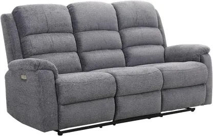 Canapé relax électrique conçu pour ajuster facilement votre position par simple pression d'un bouton. Ce canapé 3+2 places en tissu gris présente un design classique. Dimensions : L187/171 x P95 x H103 cm. Hauteur d'assise : 51 cm, Profondeur d'assise : 57 cm. Il est équipé d'un mécanisme relax électrique, d'une tablette et de porte-gobelets.