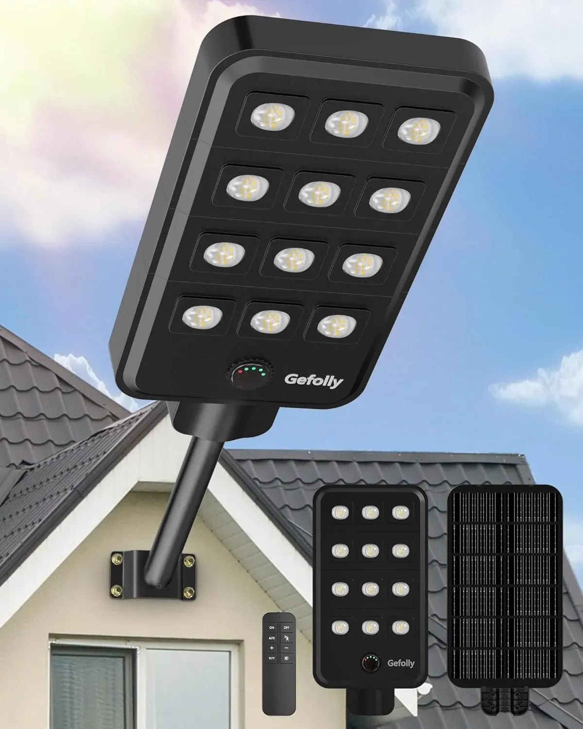 Gefolly G-13000W Lampadaire Solaire Extérieur IP67, Projecteur LED à Détection de Mouvement 6500K, Éclairage Extérieur pour Jardin, Garage et Rue