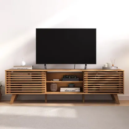 IDIMEX Meuble TV en Bois Massif avec Portes Coulissantes et Étagères Ajustables, Chêne, 175 x 50 x 38 cm, Pour Télévision Jusqu'à 190 cm