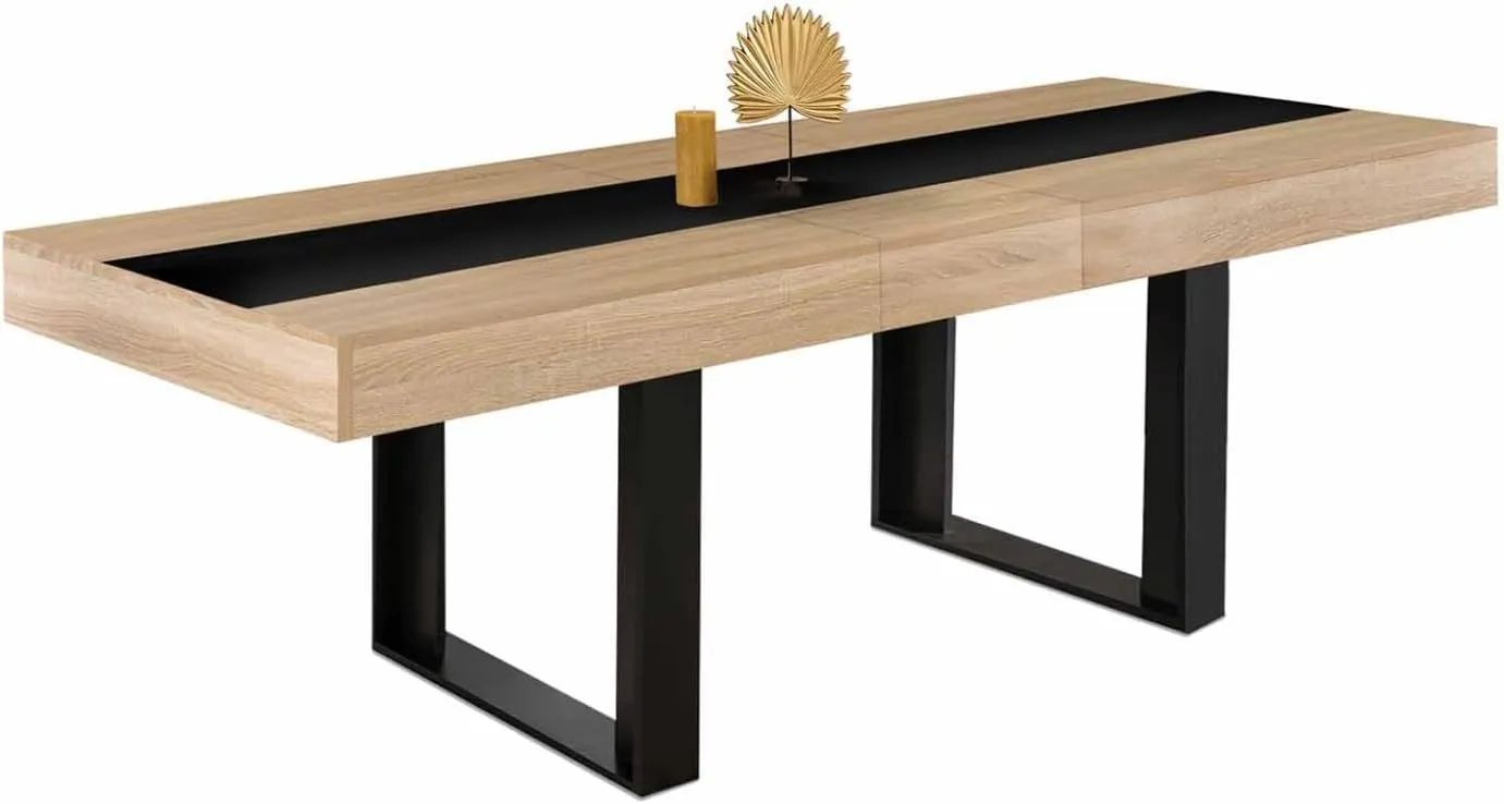 IDMarket - Table à Manger Extensible Rectangle Phoenix Bois Noir 4 à 8 Convives 160-200 cm