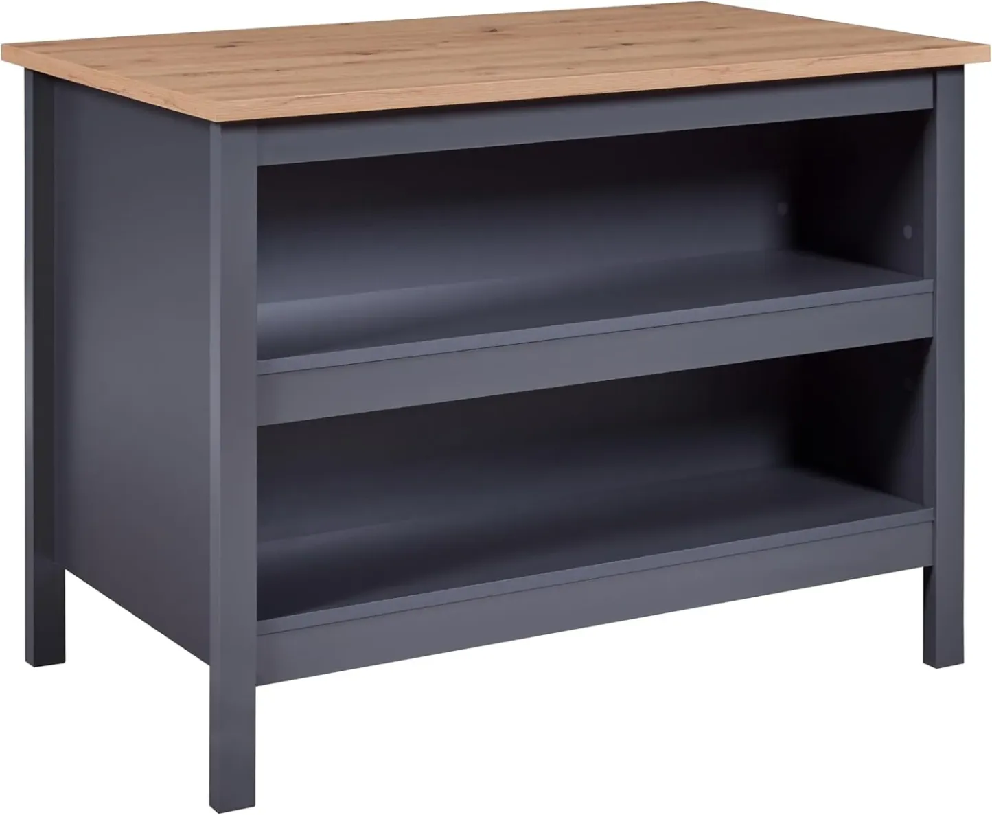 Îlot de Cuisine Central Nellina en Mélaminé Anthracite et Chêne Artisan avec Étagères