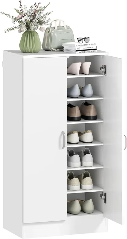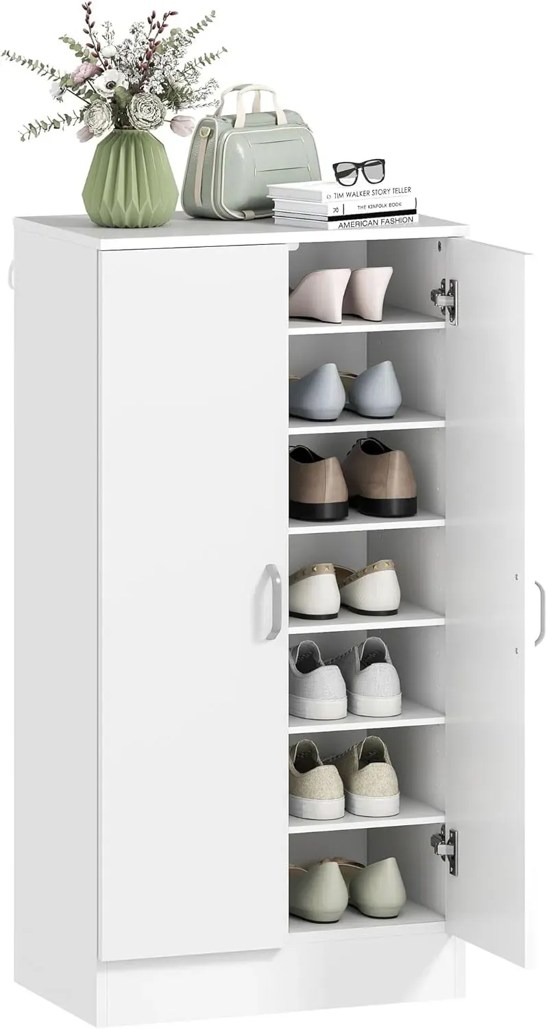 Meuble à Chaussures HOMCOM avec Portes et Étagères Ajustables, Capacité pour 14 Paires, Blanc