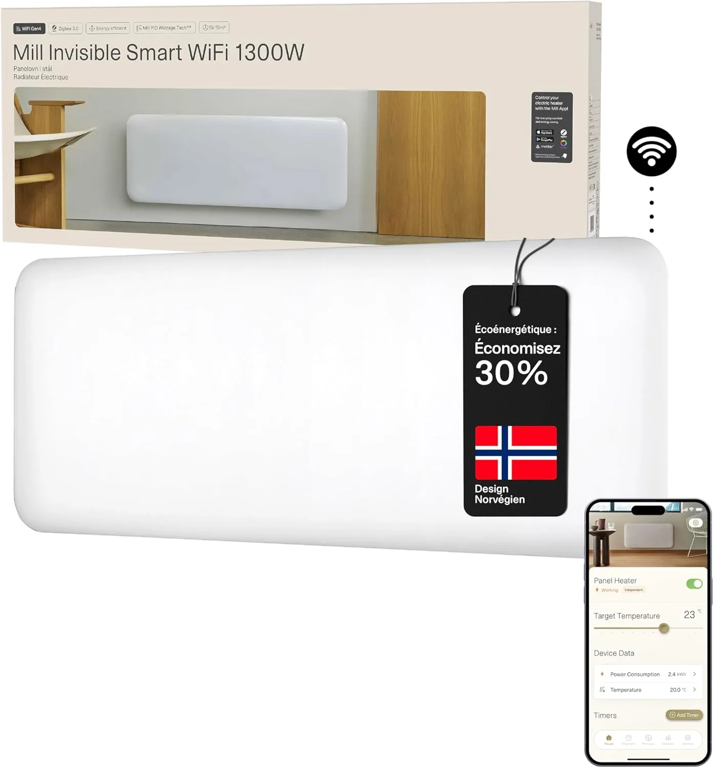 Radiateur Mural Invisible Mill WiFi 1300W Gén. 4