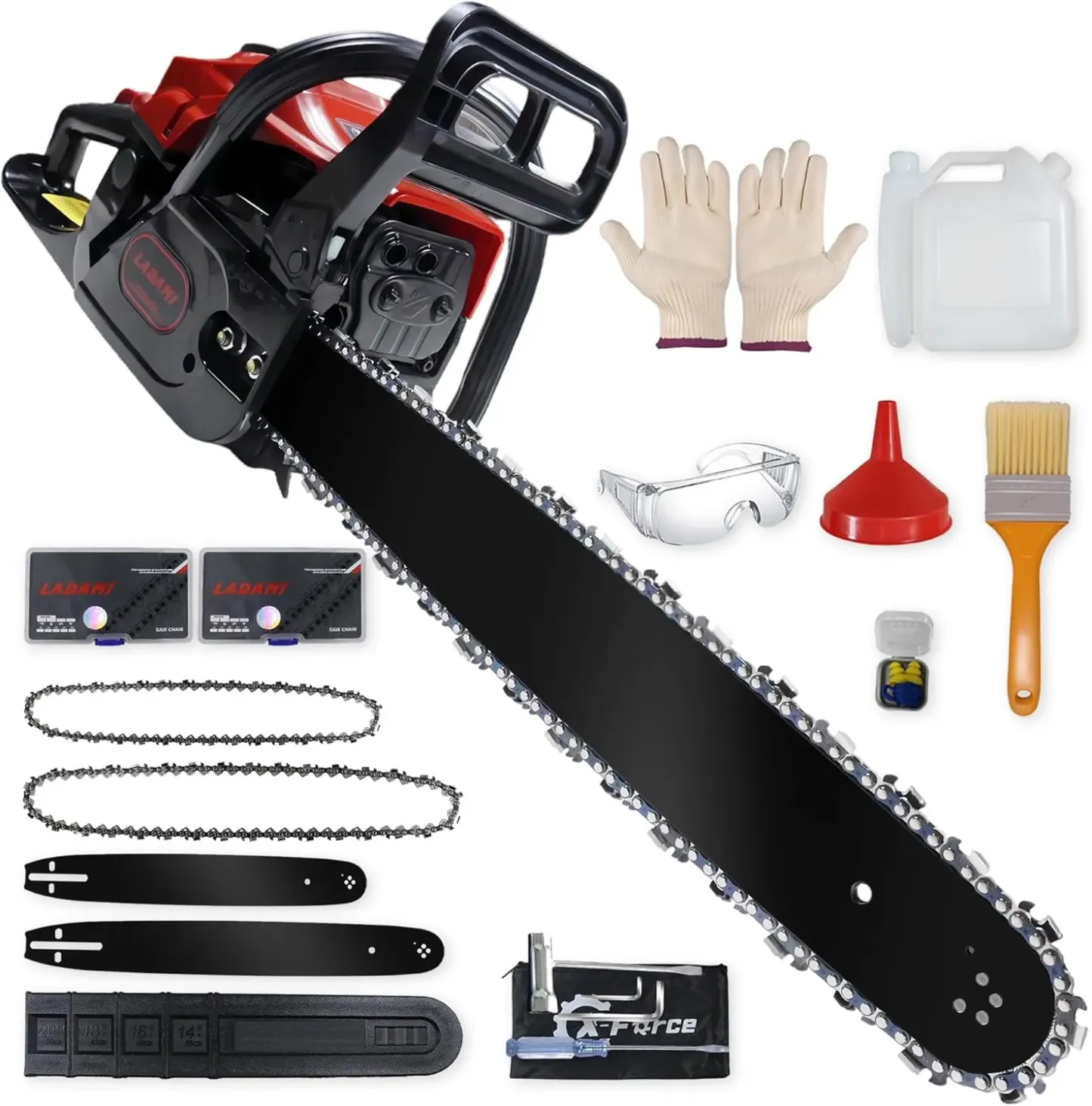 Tronçonneuse à essence 58cc, moteur 2 temps, 3,5CV, double guide-chaîne 50/40 cm, pour entretien des arbres et jardinage